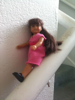 yesterday i took some pics of my mini molly of her doing gymnastics in her leotard i made her! heh it was funny how she thought some thig were so exzotic and rare!