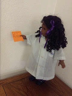The doctor coat was actually on a teddy bear Madison’s dad had when he was in the hospital as a baby. When they were looking through old stuff, Madison asked if she could have it for Molly (she didn’t have Cecile and Josefina yet) and her dad said YES, because it brought HIM memories when HE was a little kid and now it will bring HER memories :)