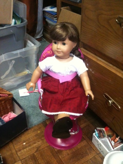 It was a normal day in the life of American Girl. Molly (my owner) was sitting in the Our Generation Salon Chair, waiting for her hair to be styled.