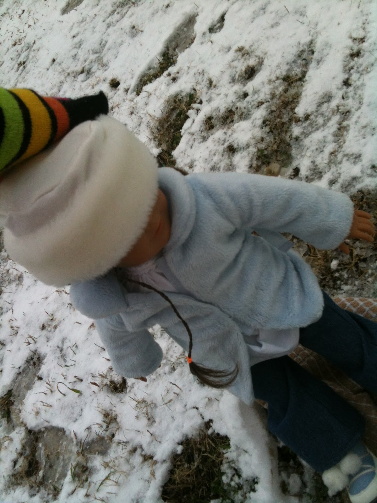 We wanted to make a doll-sized snowman, but the snow wouldn’t stick into balls. :( Never-the-less, we had an amazing time eating snow, and ice-sakting (sort of. There was this but inflatable pool filled with water, and it froze went the snow came. I wanted to ‘ice-skate’ on it, but I didn’t have ice-skates and we didn’t take a picture.)