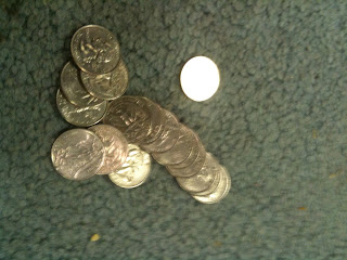 And my mom’s brother gave her 4.75, but you were close! Some quarters were ‘hiding’ behind others, so it made it hard to count!