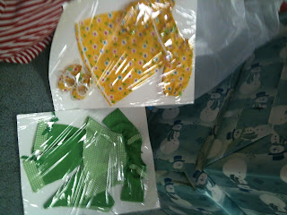 Also from Aunt Annette, hand sewn: A fun, spring dress (with shoes! They fit me! :D), and a checkered white-and-green shirt and pants, and a cute little hat!