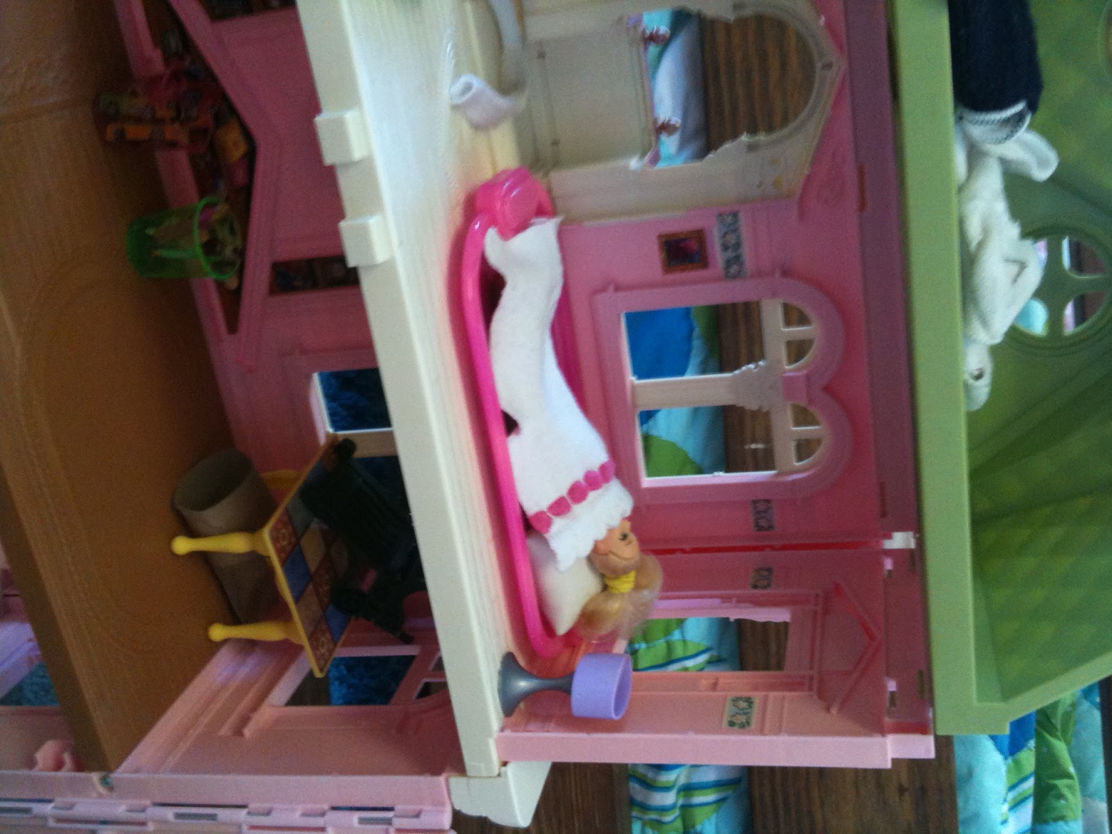 And she picked up the toy dolls. We got tired and ate supper, then we got into bed.