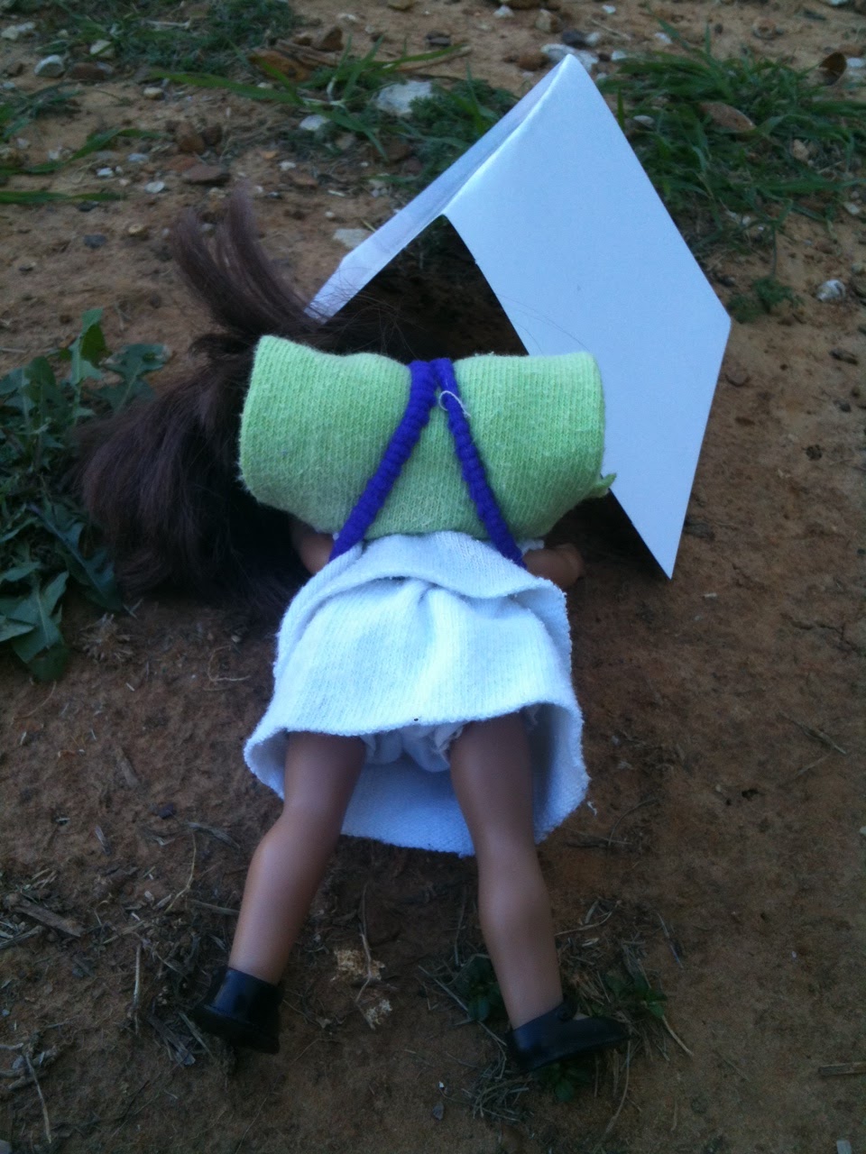Oh, on the Message Board, she is abbiewarmheart51, and she gave me the idea of a sock for a sleeping bag and Mini-Molly to go camping! She is one of my friends ;)